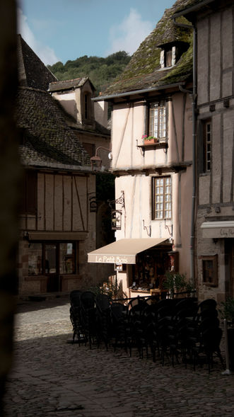 The village resonates with stories of days gone by, when the monk Aronidse stole the relics of Sainte-Foy d'Agen to give them to his abbey in Conques, or when the armies of the King of France devastated Occitania in search of the Albigensian heretics... These resounding tales of crusades, pious petty theft, knight-poets, cavalcades and Romanesque devotion have shaped the history and identity of the village of Conques. Its architecture, both modest and endearing, bears the hallmark of peril, courage and piety in the Middle Ages.